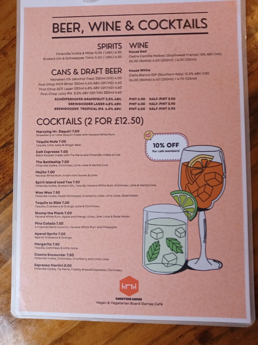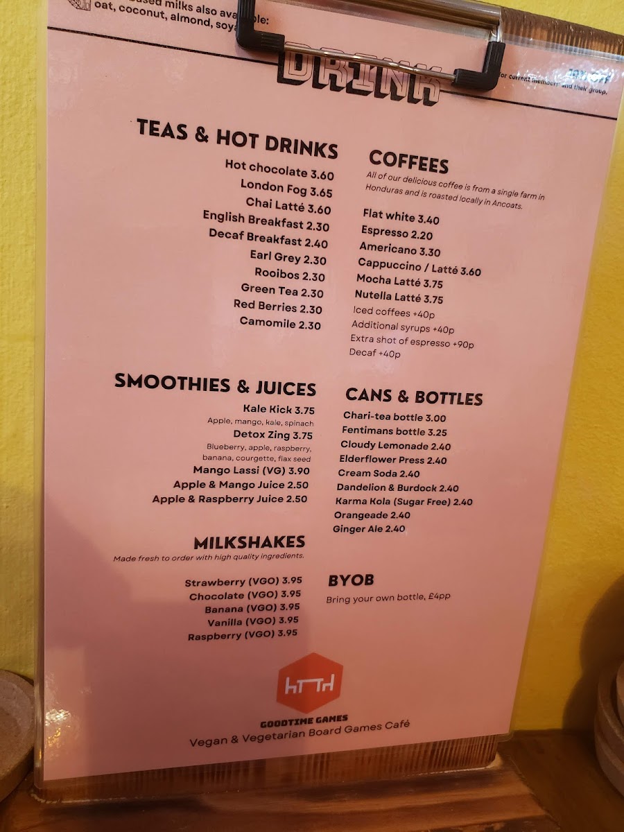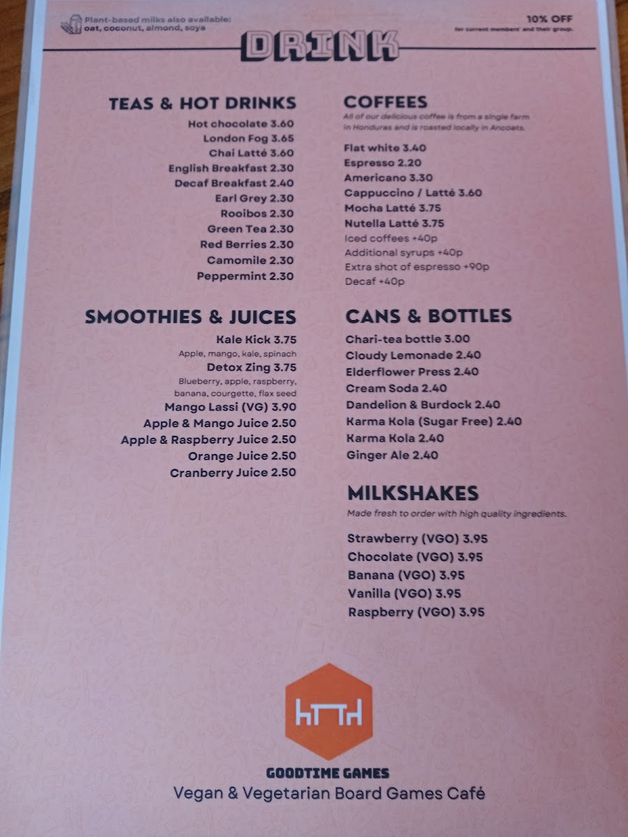 Goodtime Games, located in the heart of West Didsbury, Manchester, is not just a café; it’s a haven for board game enthusiasts and food lovers alike. The menu beautifully complements the fun atmosphere, featuring a delightful selection of teas, hot drinks, and refreshing beverages. Savor the rich Hot Chocolate or the aromatic Chai Latte while you enjoy a game with friends.
